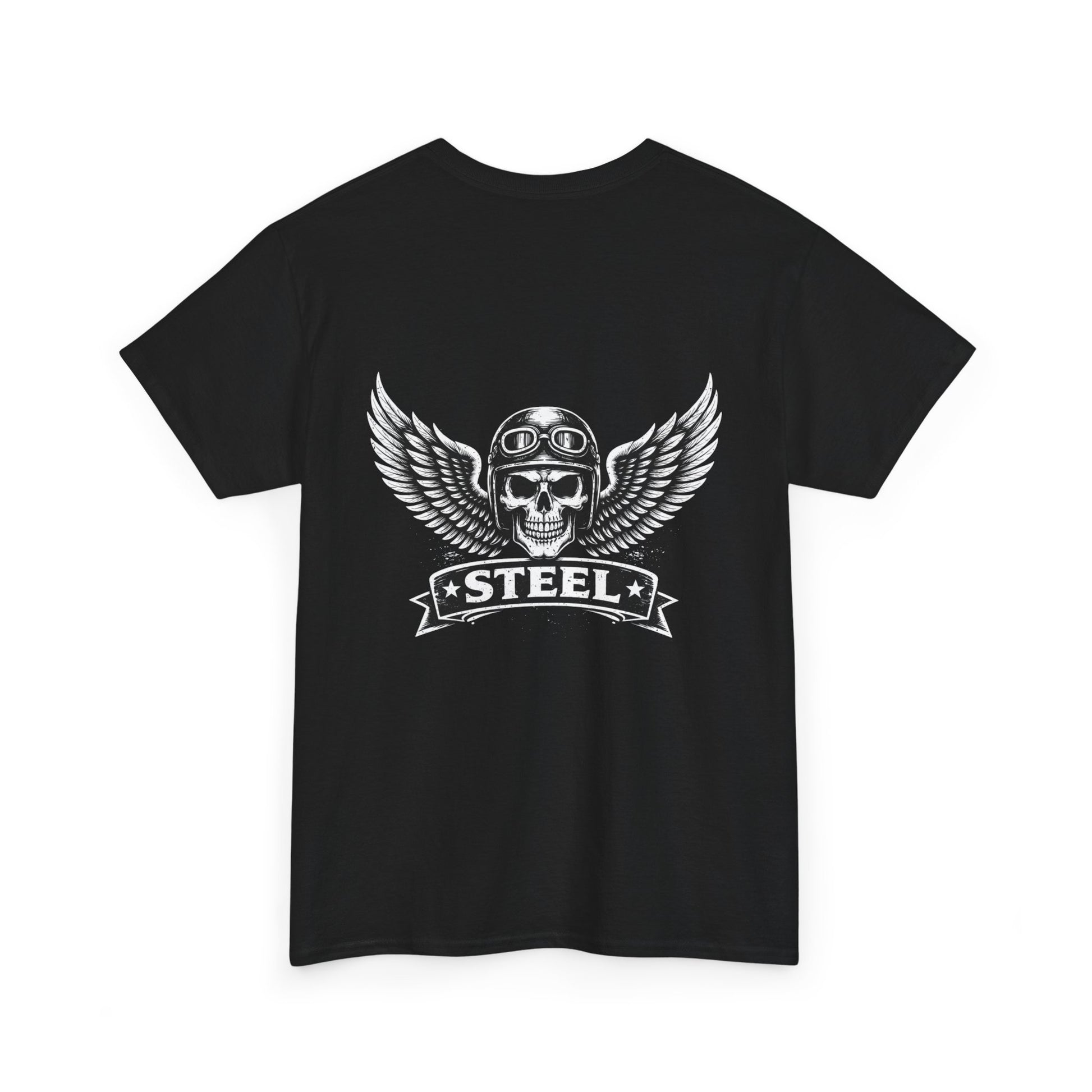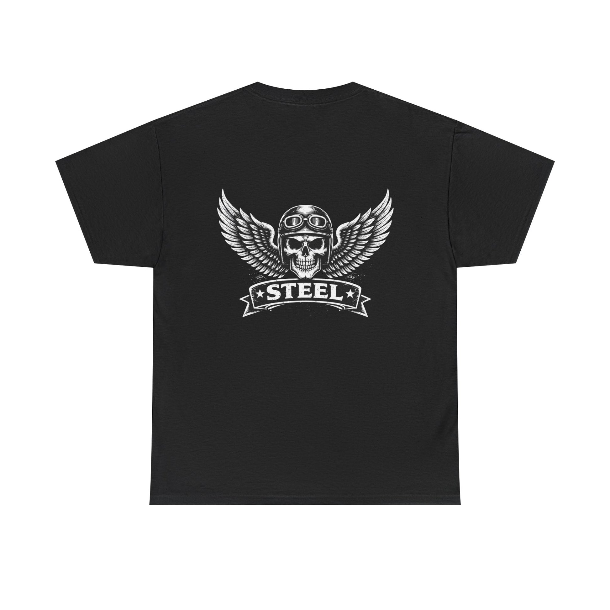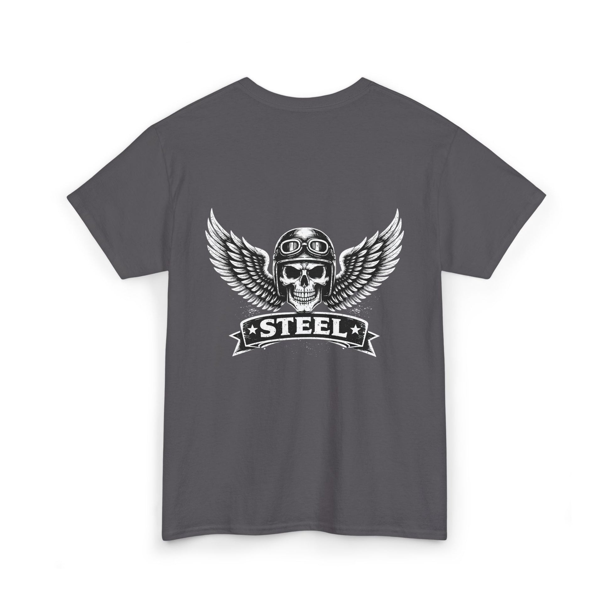 Steel Skull Wing Tee — Biker Skull Graphic T-Shirt