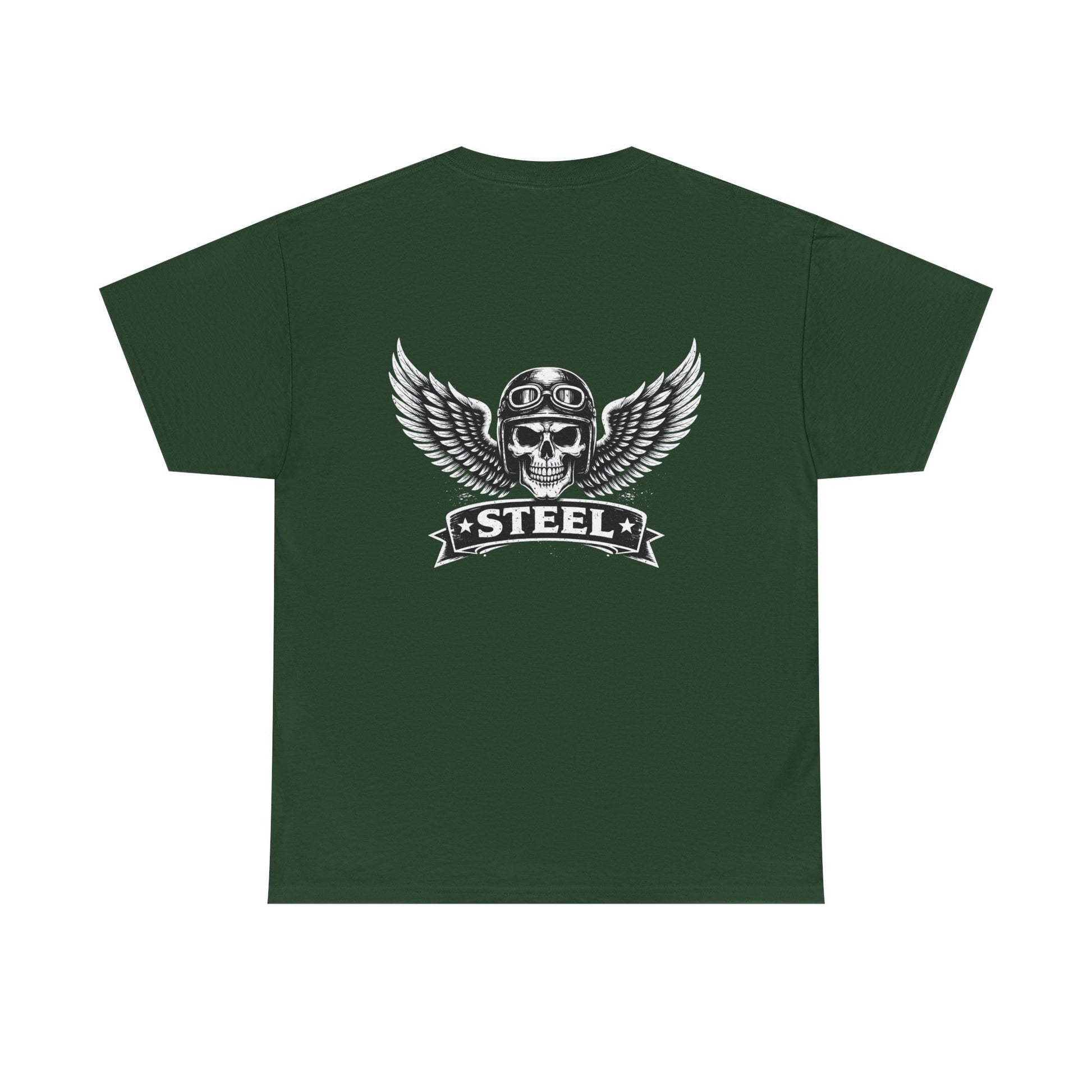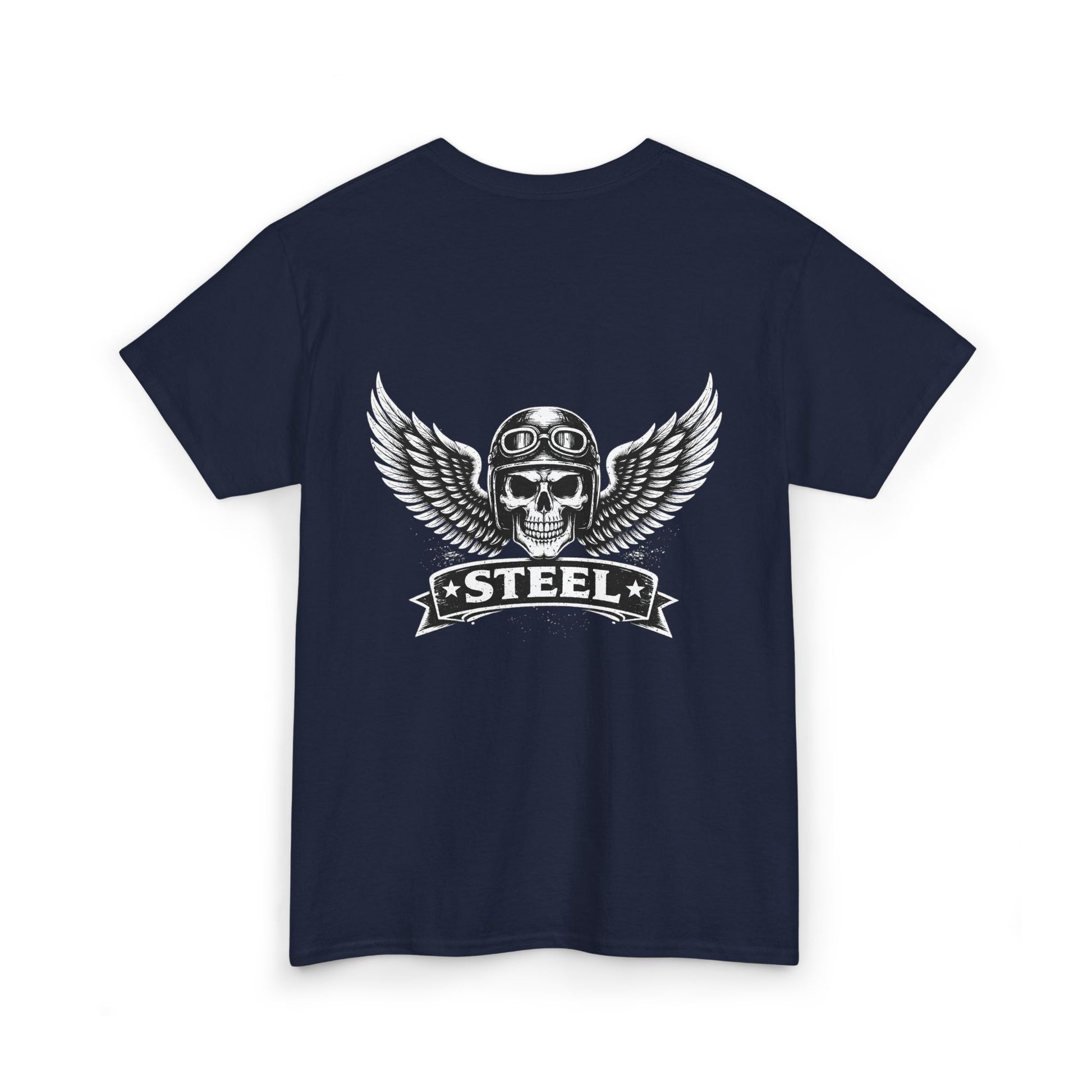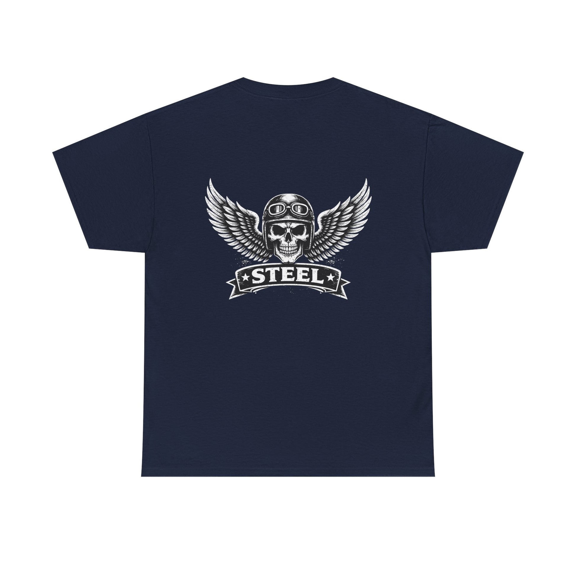 Steel Skull Wing Tee — Biker Skull Graphic T-Shirt